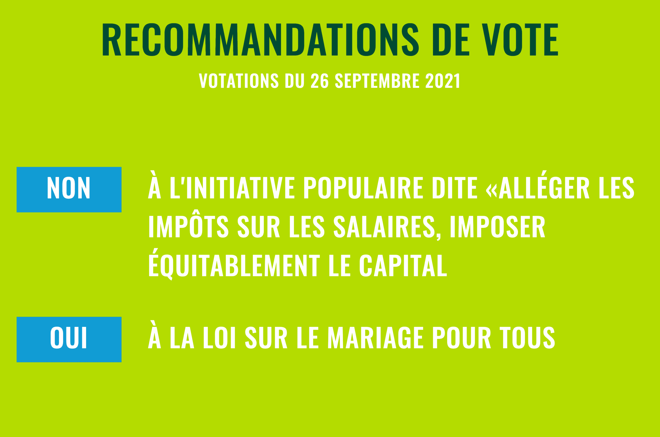 Au terme d’un débat très riche en informations sur le système fiscal suisse, les Vert’libéraux genevois ont décidé de suivre le comité directeur cantonal et de recommander sans hésitation le non à cet objet. En effet, l’initiative ne résoudrait pas les inégalités de revenu en Suisse, particulièrement en ce qui concerne les 1% les plus riches, alors qu’ils sont spécifiquement visés par l’initiative.
